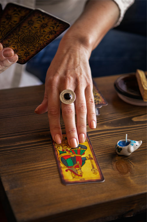 Le tarot avec le son de votre voix sont des supports aux flashs et intuitions que je perçois lors de nos rendez-vous ou par téléphone.